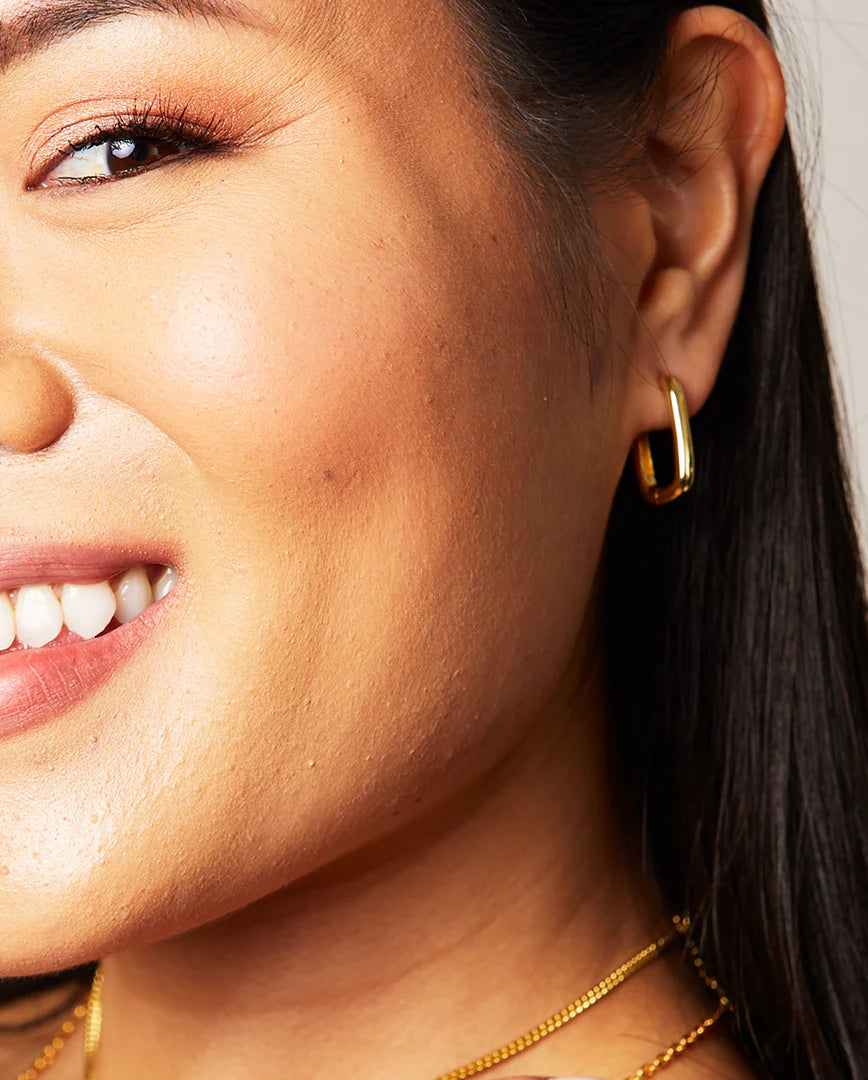 The Penelope Earrings are the quiet kind of bold - the kind that lingers. With a softly structured rectangular shape and high-polish gold finish, they strike the perfect balance between strength and simplicity.
