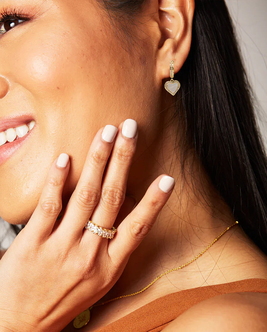 The Deltora™ Alice Earrings feature gold pavé mini hoops with a drop heart charm in luminous pearl. Lightweight and radiant, they’re made to elevate your everyday and shine on your night out.