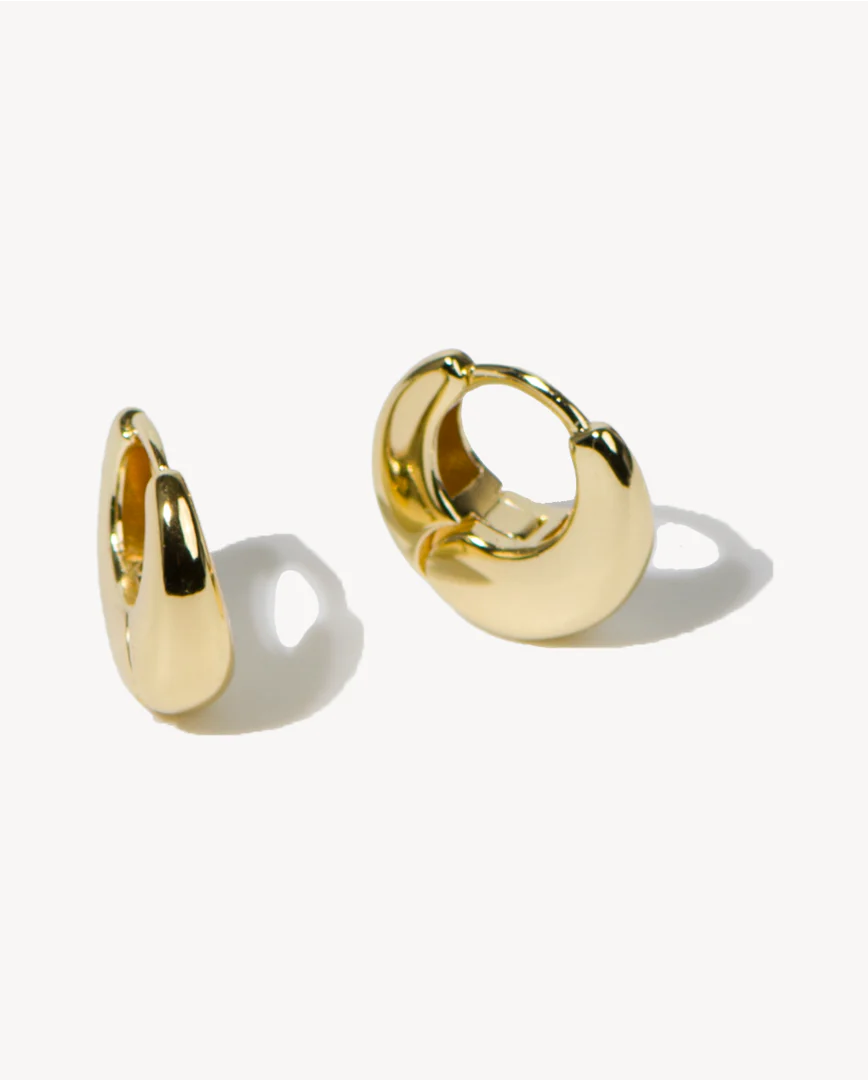 Minimal in size, bold in shape - these signature gold earrings are crafted to catch the light just right. Designed to feel modern yet timeless, they bring effortless sophistication to any look, whether you’re dressing up or keeping it casual.