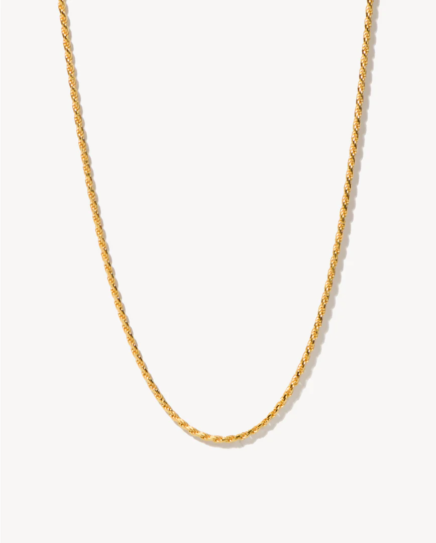 The Iconic Alexandria Necklace captures the quiet strength of simplicity. Meticulously crafted in rich 18K yellow gold vermeil, this 16-inch rope chain shimmers with soft texture and refined brilliance. It’s the kind of piece that feels effortless—elevating any neckline, any day, with just the right amount of gleam.