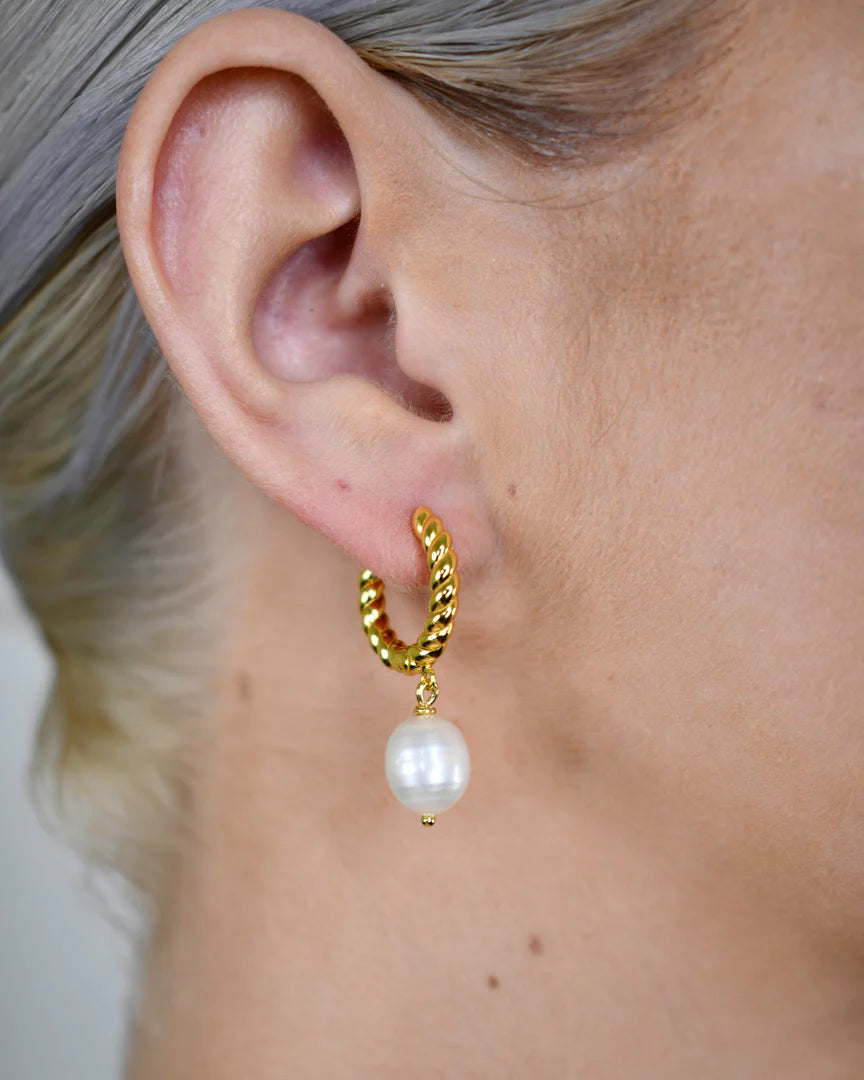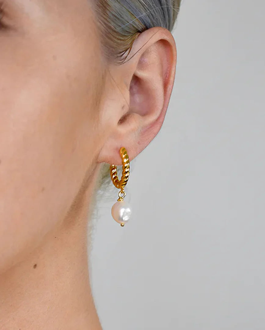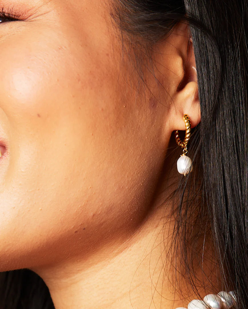 The Deltora™ Iconic Olympia earrings are a study in contrast and grace. Featuring a twisted rope-textured hoop and a suspended baroque freshwater pearl, each pair captures the raw beauty of nature and the polish of modern design. Named for the strength and elegance of ancient Olympia, these earrings are made to endure trends and amplify your presence.
