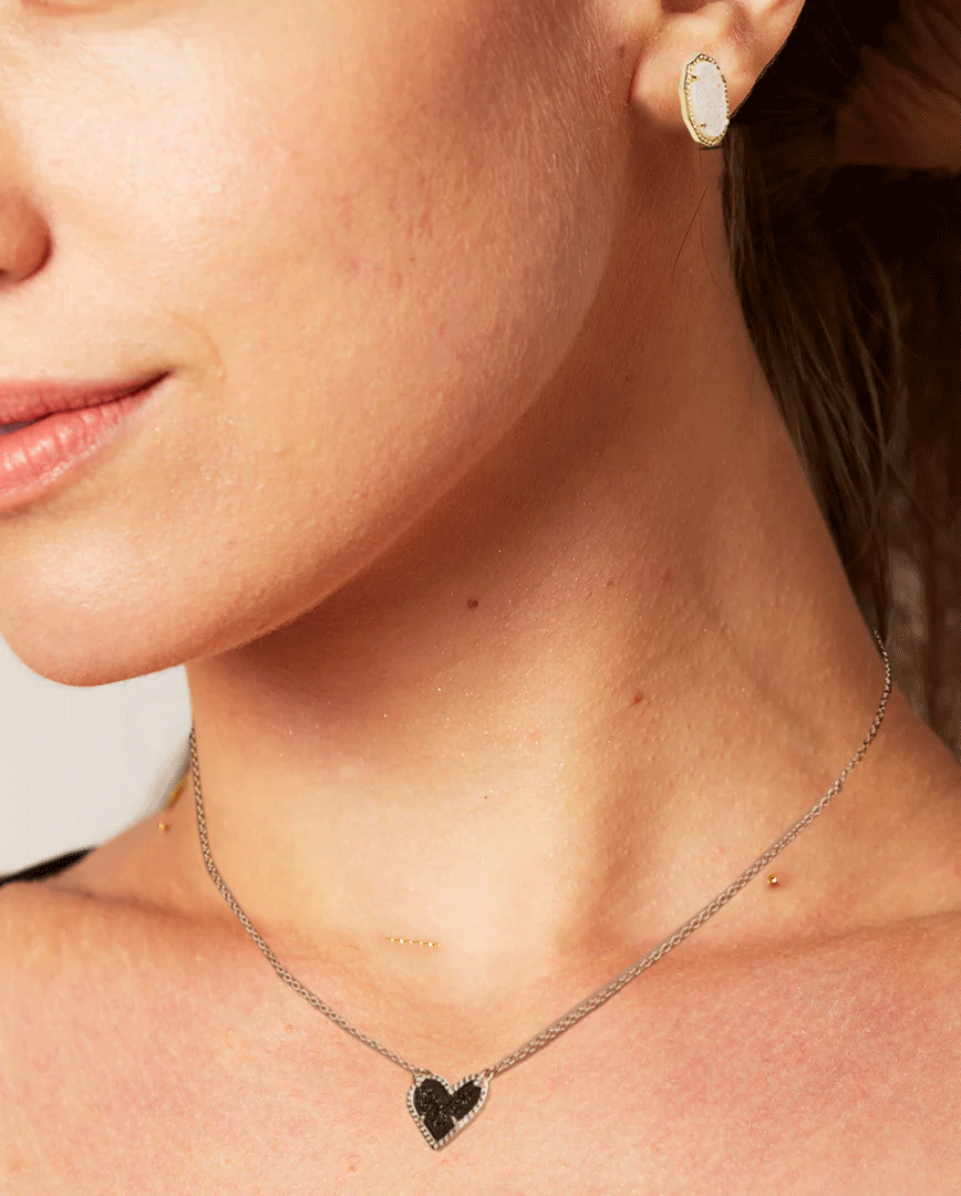Deltora™ Iconic Paris Heart Gold Necklace in Black Drusy